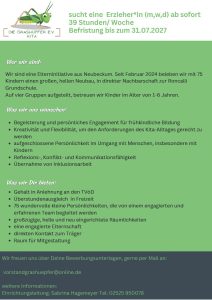 Wir suchen zum 01.08.2026 staatlich geprüfte ErzieherInnen (m, w, d), die das Anerkennungsjahr 2026/27 bei uns absolvieren möchten.
